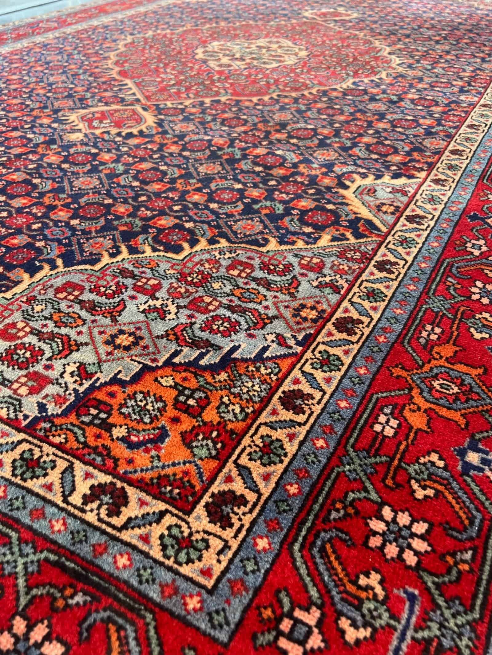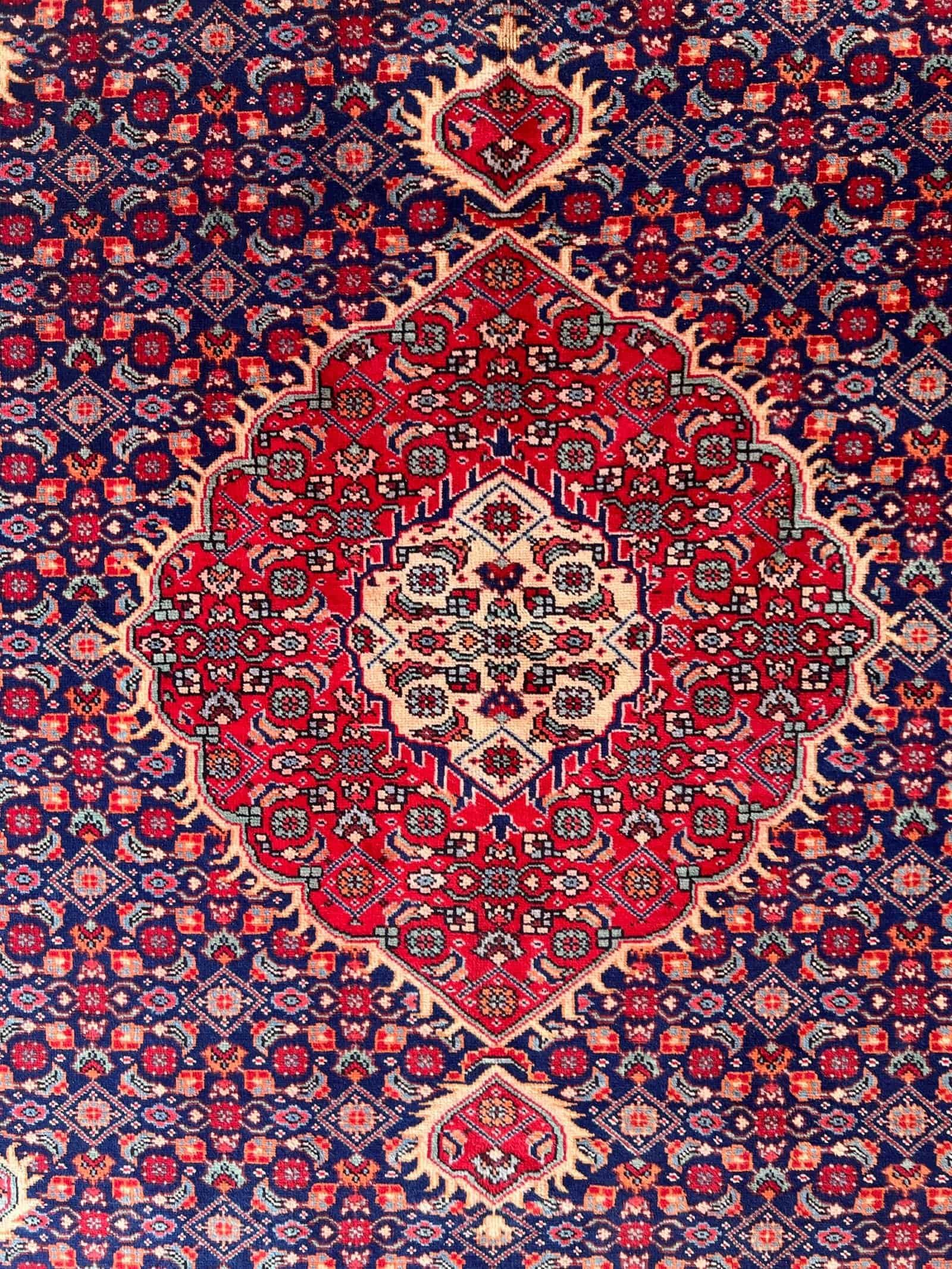 This elegant Ardabil rug features the classic Mahi (Herati) design, known for its repeating fish-scale and floral motifs. Woven with precision in the Ardabil region of northwestern Iran, this carpet blends rich blue tones with fine detailing to create a balanced and timeless look. Durable and refined, it’s a perfect match for both modern and traditional spaces seeking a touch of Persian heritage and craftsmanship.