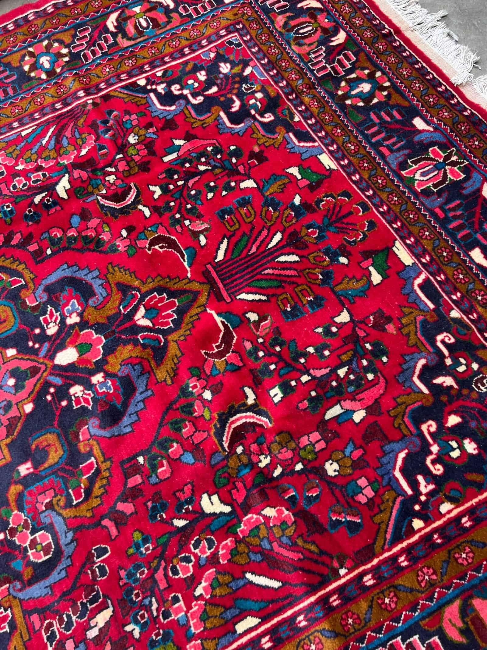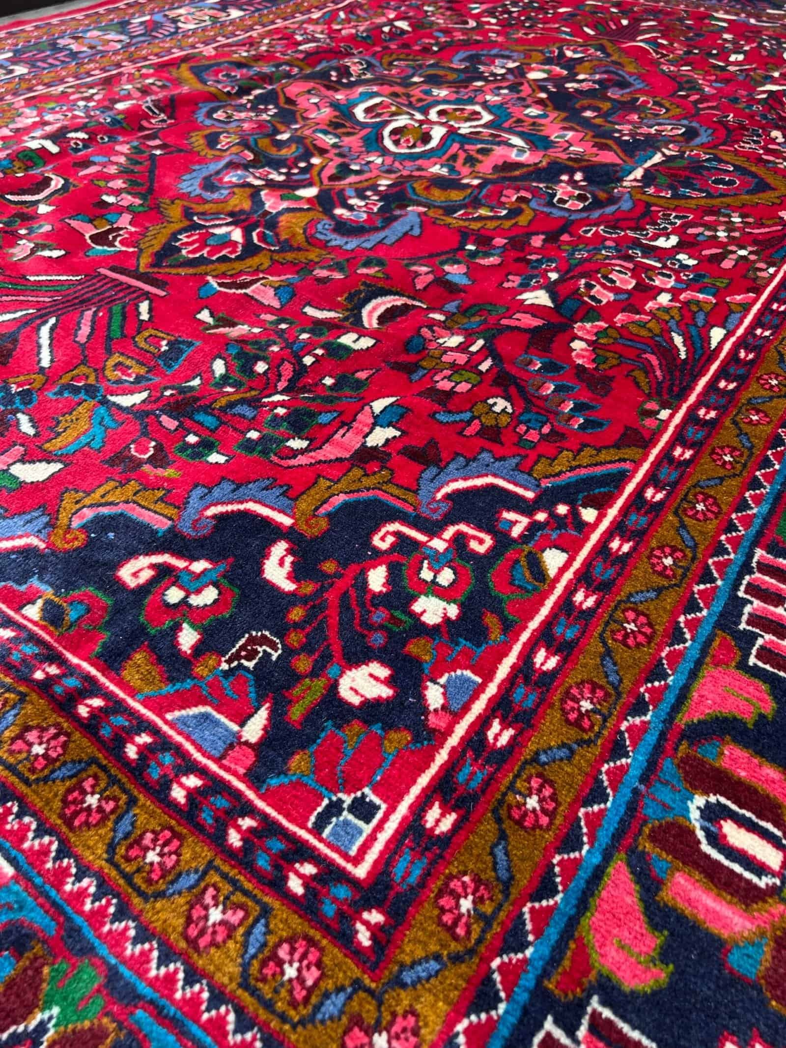 This striking Bakhtiar rug showcases the artistic depth of Persian tribal weaving, distinguished by its central medallion design—a less common layout among Bakhtiar pieces. Woven by hand using high-quality wool and natural dyes, it reflects the craftsmanship of Bakhtiari weavers while offering a more refined and symmetrical look. Ideal for adding character and heritage to living rooms, entrances, or offices, this piece balances traditional tribal spirit with classic Persian elegance.