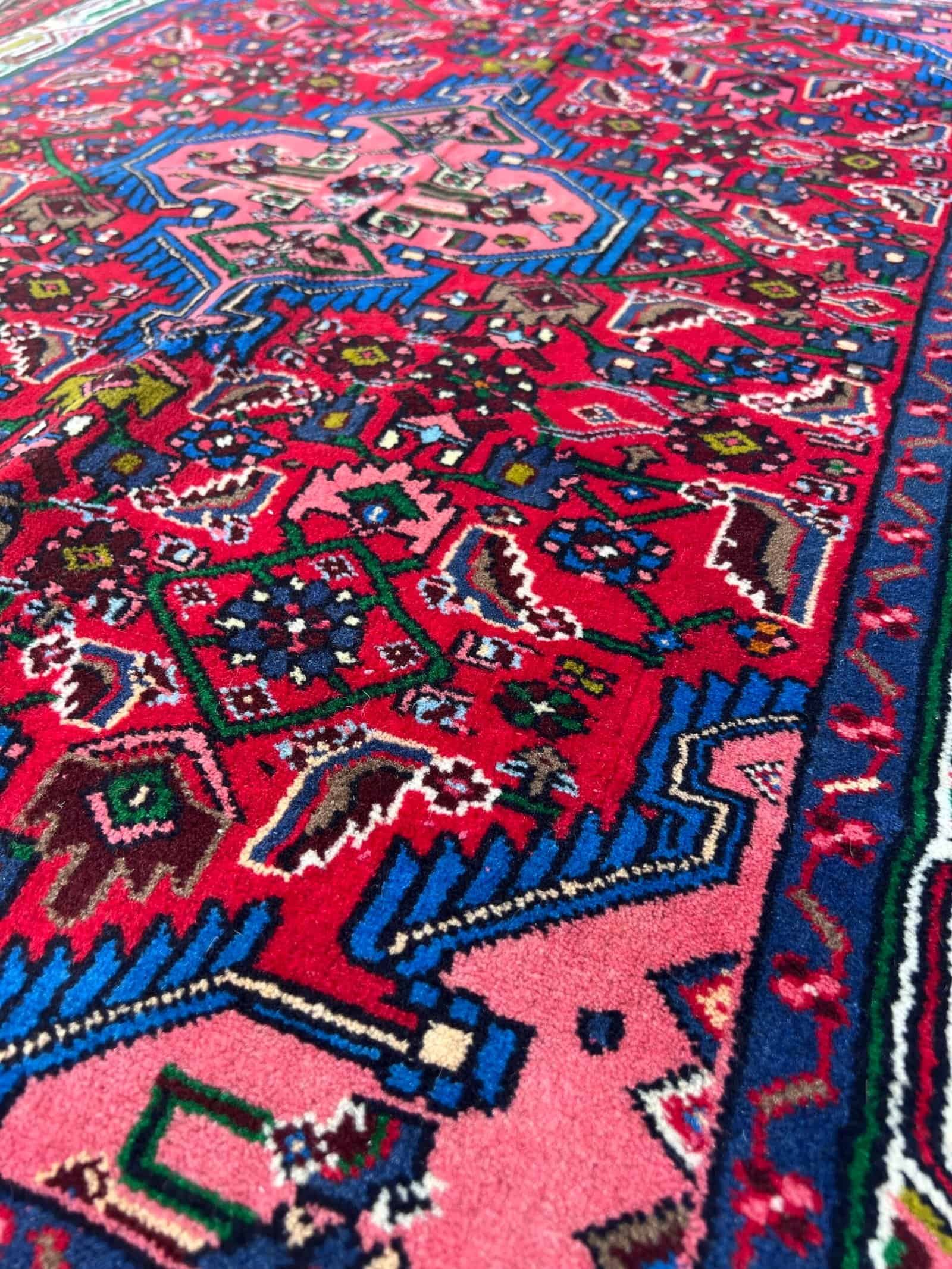 A classic Hamadan rug handwoven with soft wool and bold tribal patterns. Known for its durability and character, it brings warmth and tradition to any space.