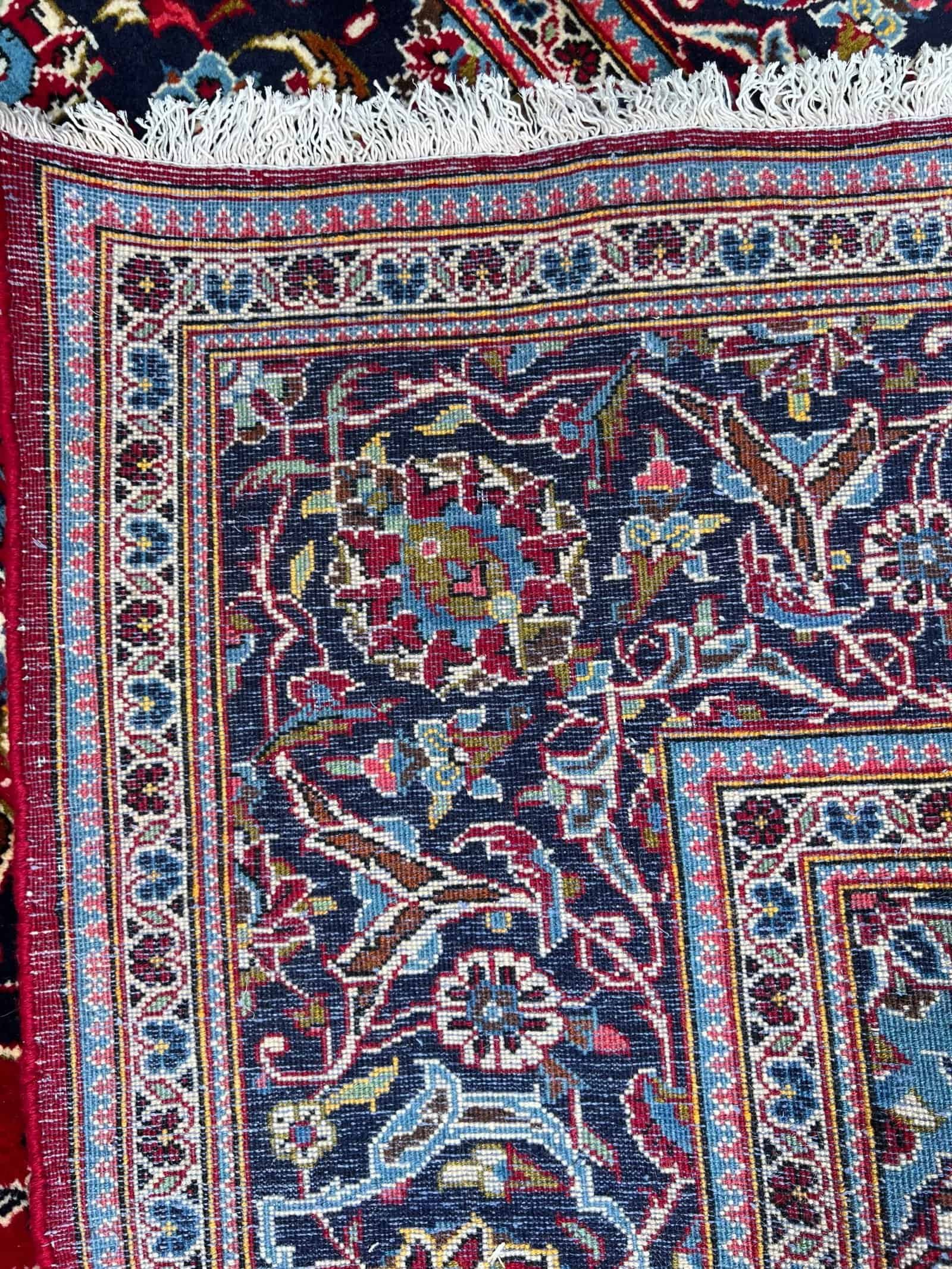 Originating from the historic city of Kashan in central Iran, this classic Persian carpet showcases the region’s renowned craftsmanship. With its central medallion, floral field, and carefully balanced borders, the design reflects the harmony and elegance of traditional Persian aesthetics. Typically woven with high-quality wool and natural dyes, Kashan carpets are known for their durability and sophistication—making them a staple in refined homes for generations.