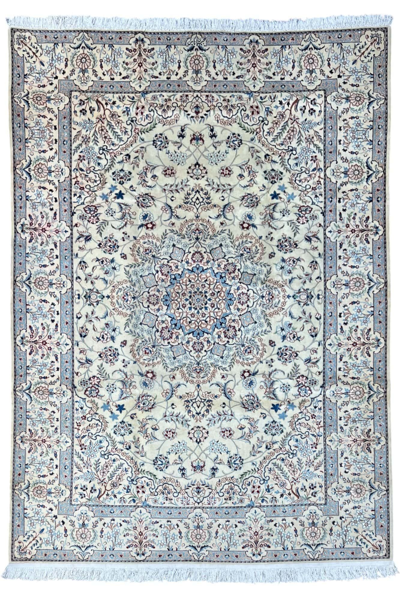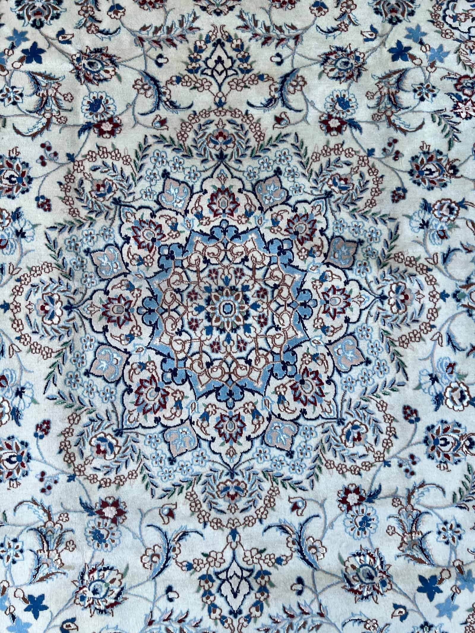 Nain rugs are celebrated for their fine craftsmanship, soft color palettes, and elegant floral designs. Handwoven using a blend of high-quality wool and silk, each piece features delicate detailing, often centered around a graceful medallion. Known for their precision and harmony, Nain rugs bring a sense of calm luxury and timeless Persian beauty to any space.