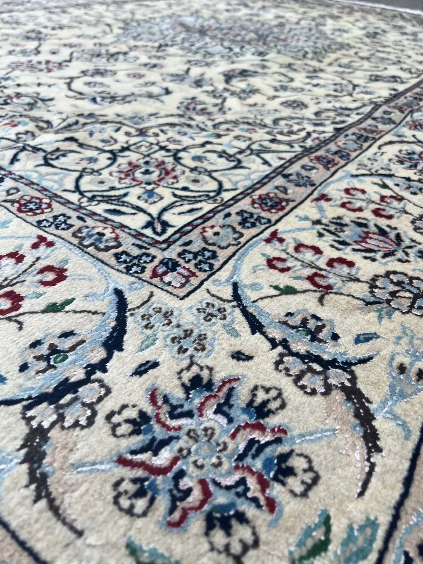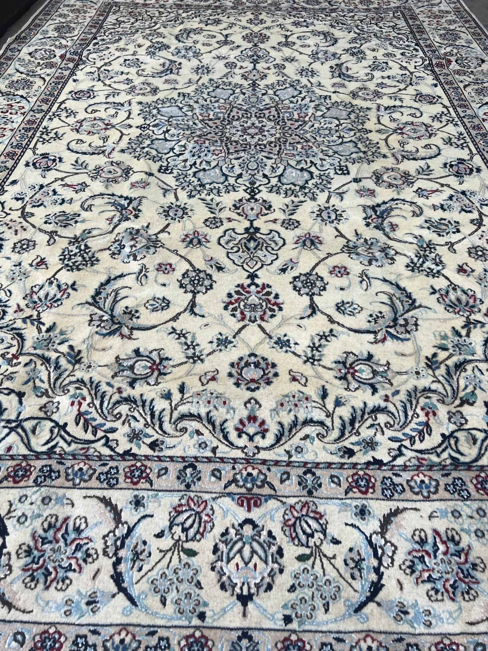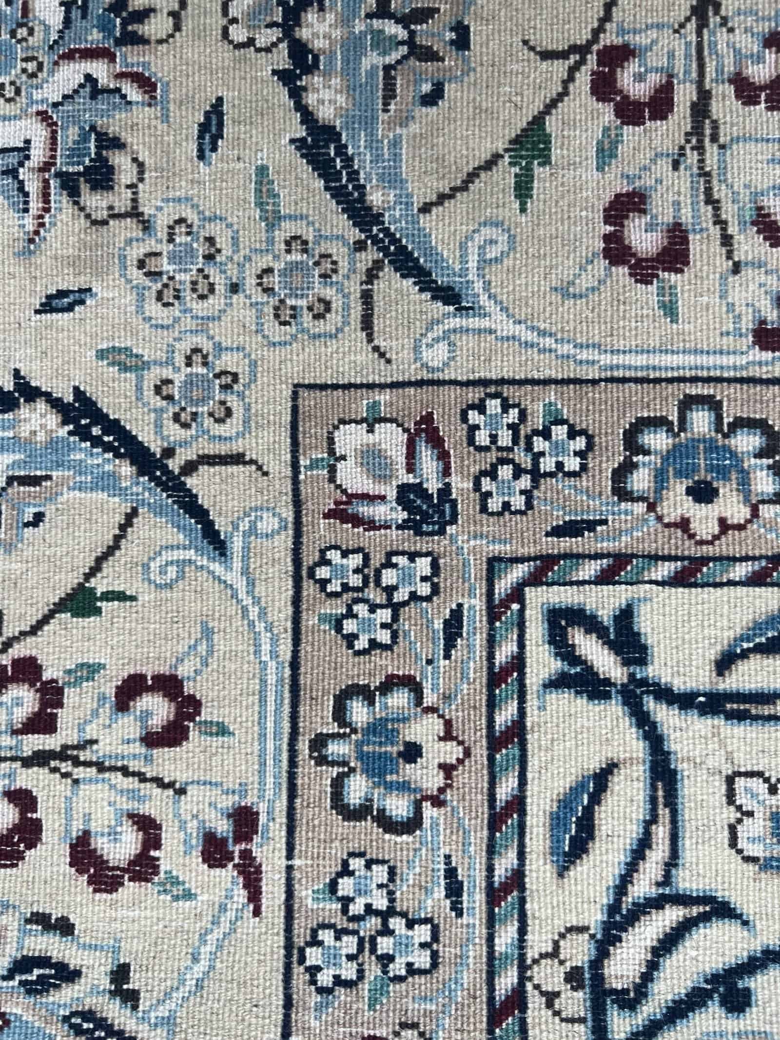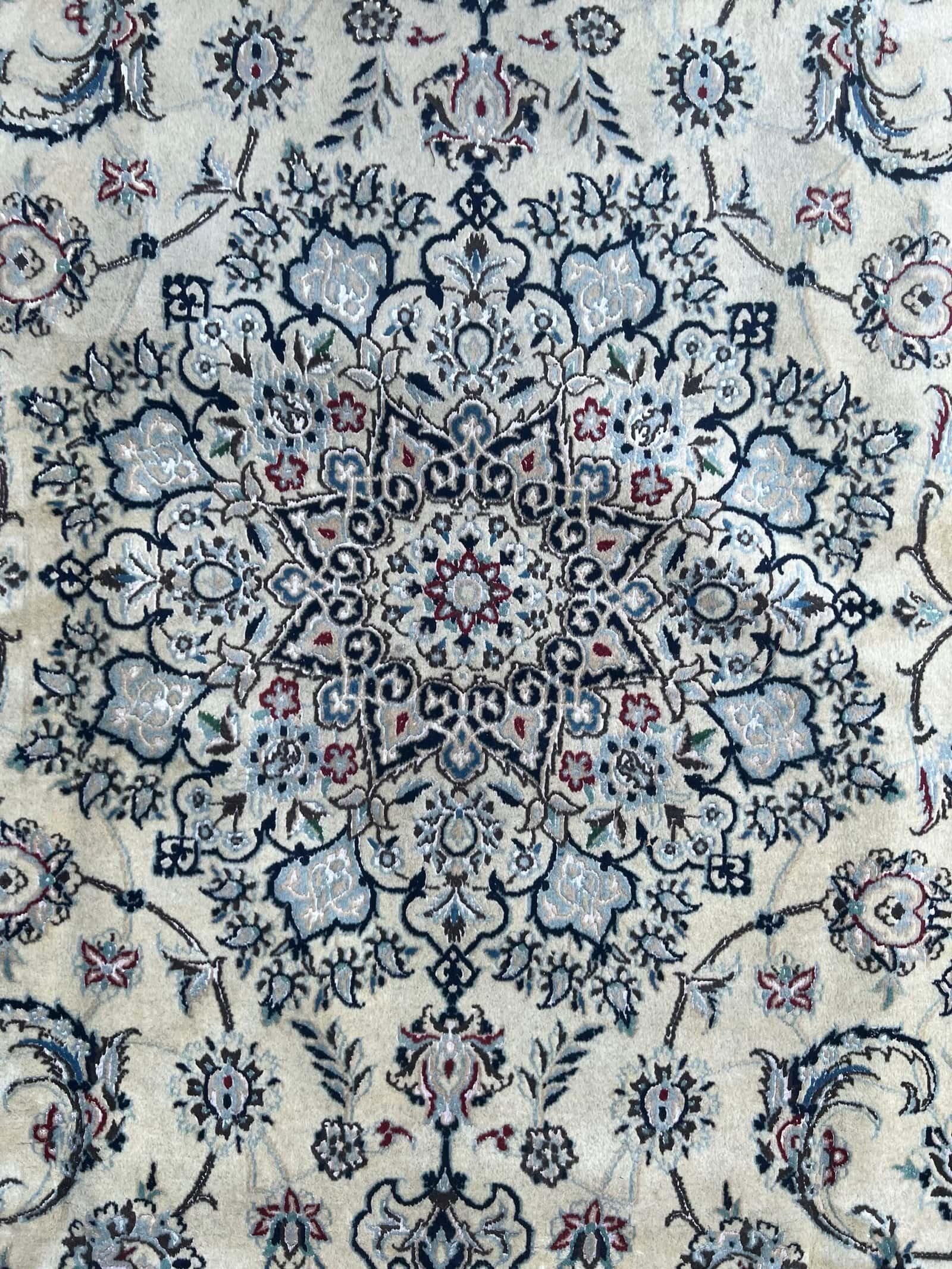 Nain rugs woven in the 9La technique are known for their fine detail and exceptional craftsmanship. Made with a blend of high-quality wool and pure silk, these pieces feature intricate floral patterns and perfectly balanced medallion designs. The “9La” refers to the density and fineness of the weave, offering a durable yet soft texture with refined precision. Elegant in style and classic in tone, Nain 9La rugs bring timeless Persian sophistication to any interior.