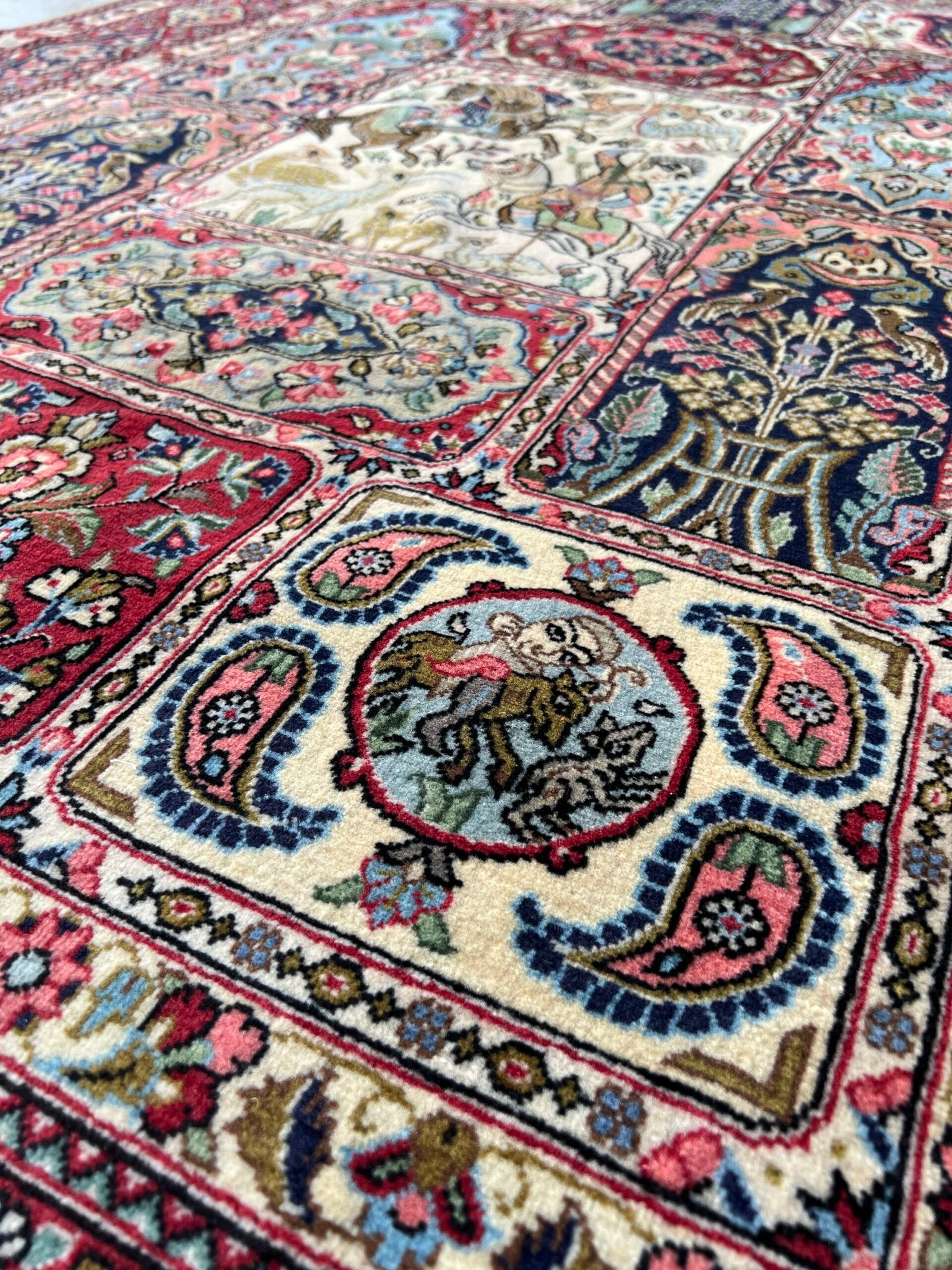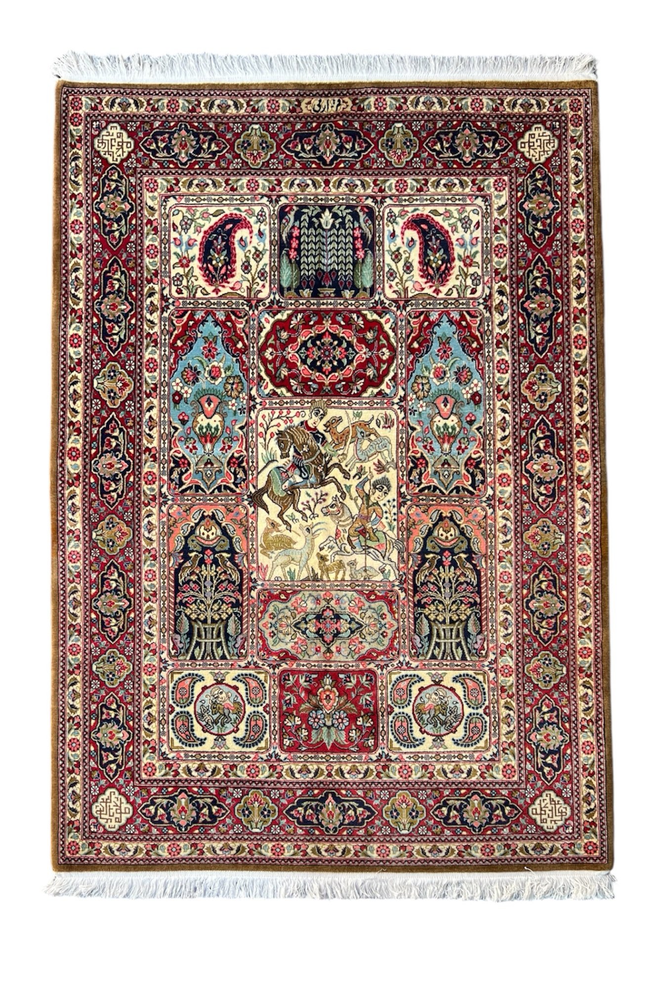 Qom Kork Wool – Irami Signed – Kheshti Design with Hunting Scene