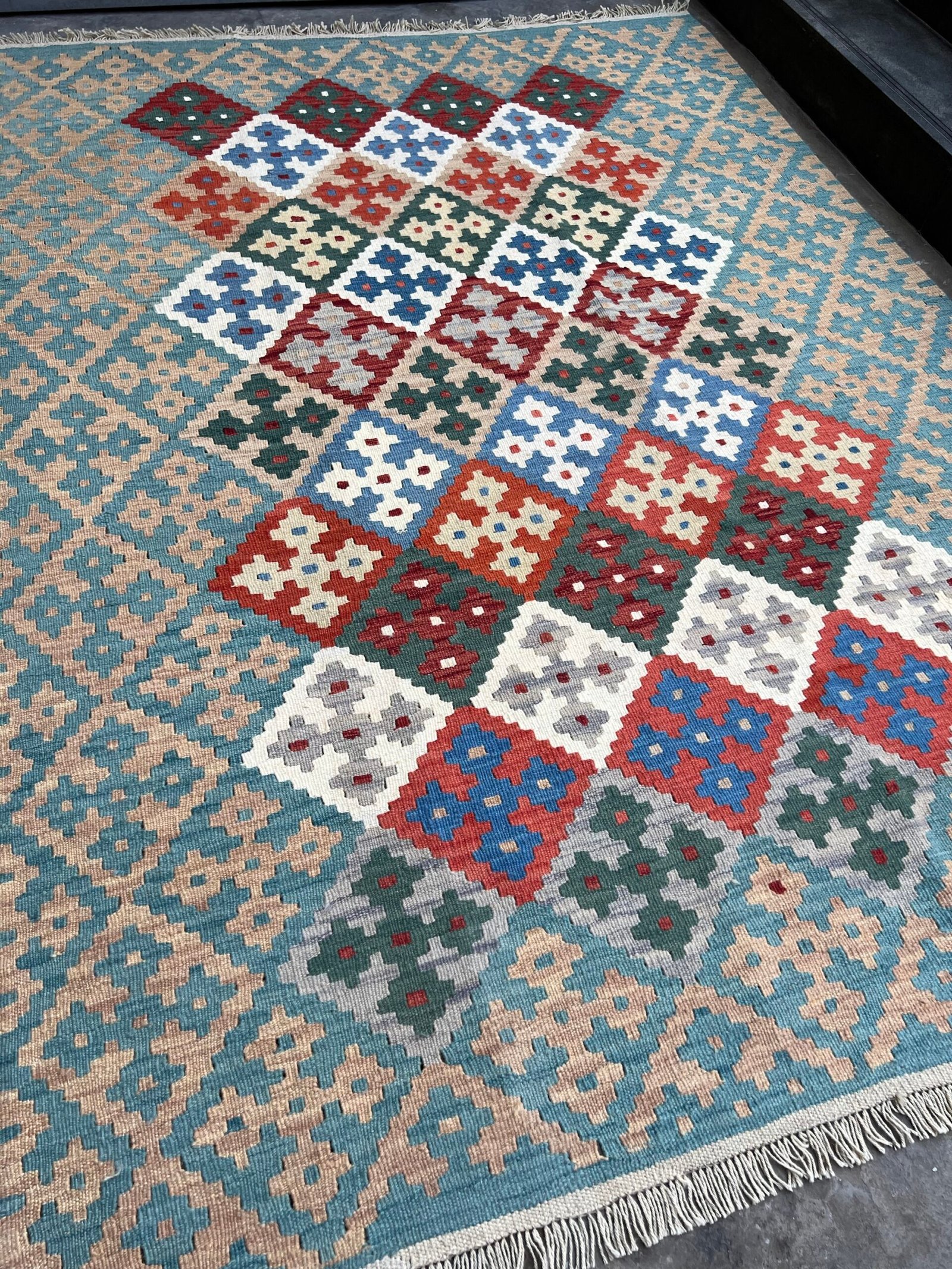 Woven by tribal artisans in southern Iran, Shiraz kilims are known for their bold patterns, earthy tones, and flatweave durability. Lightweight and reversible, each piece reflects centuries of tradition and nomadic craft.