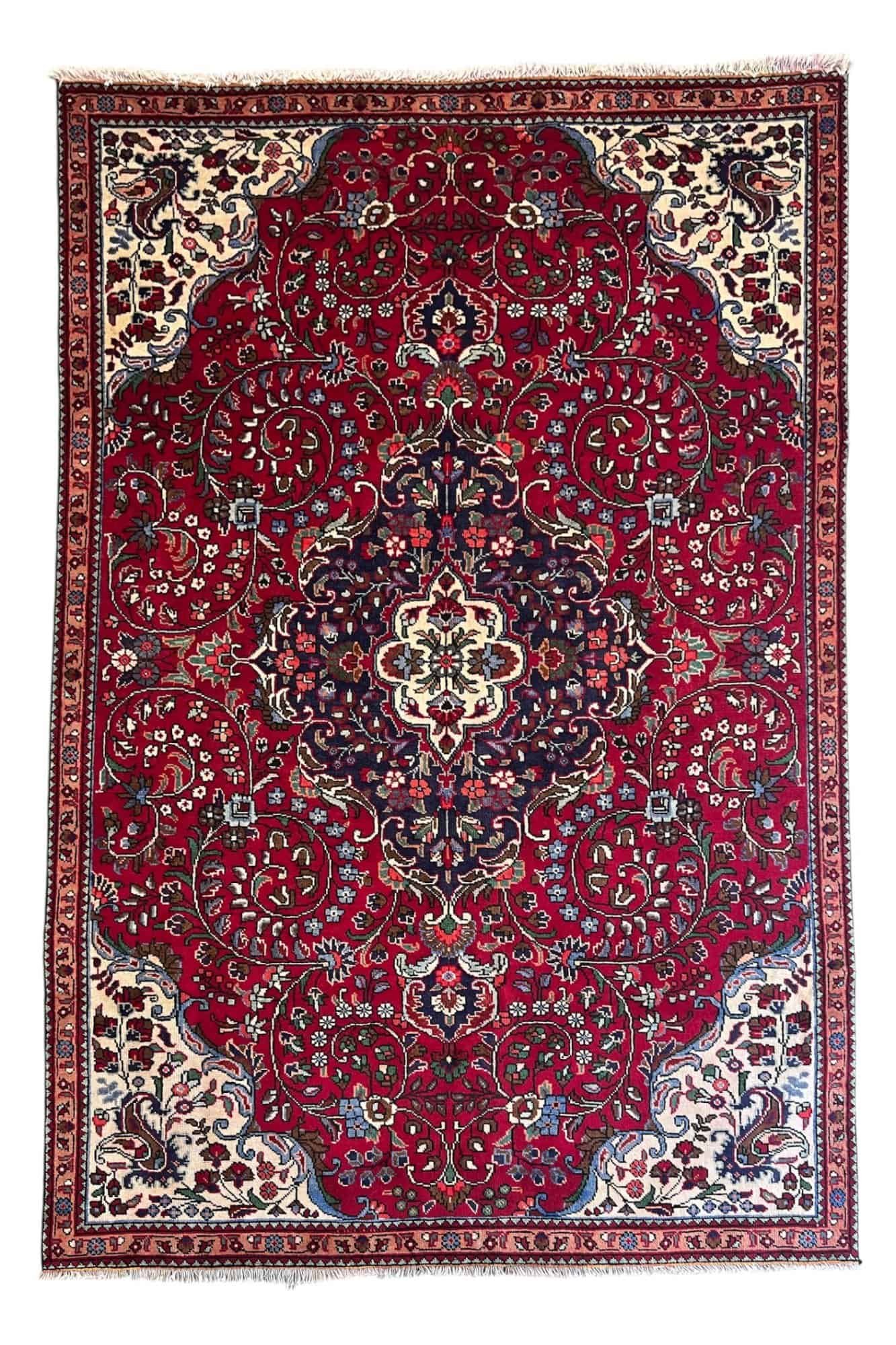 Woven in the historic city of Tabriz in northwest Iran, these carpets are known for their balanced patterns and fine craftsmanship. Made with a wool pile on a sturdy cotton foundation, they often feature a central medallion, floral motifs, and detailed borders. Tabriz rugs are prized for their elegance, durability, and ability to suit both traditional and modern spaces.