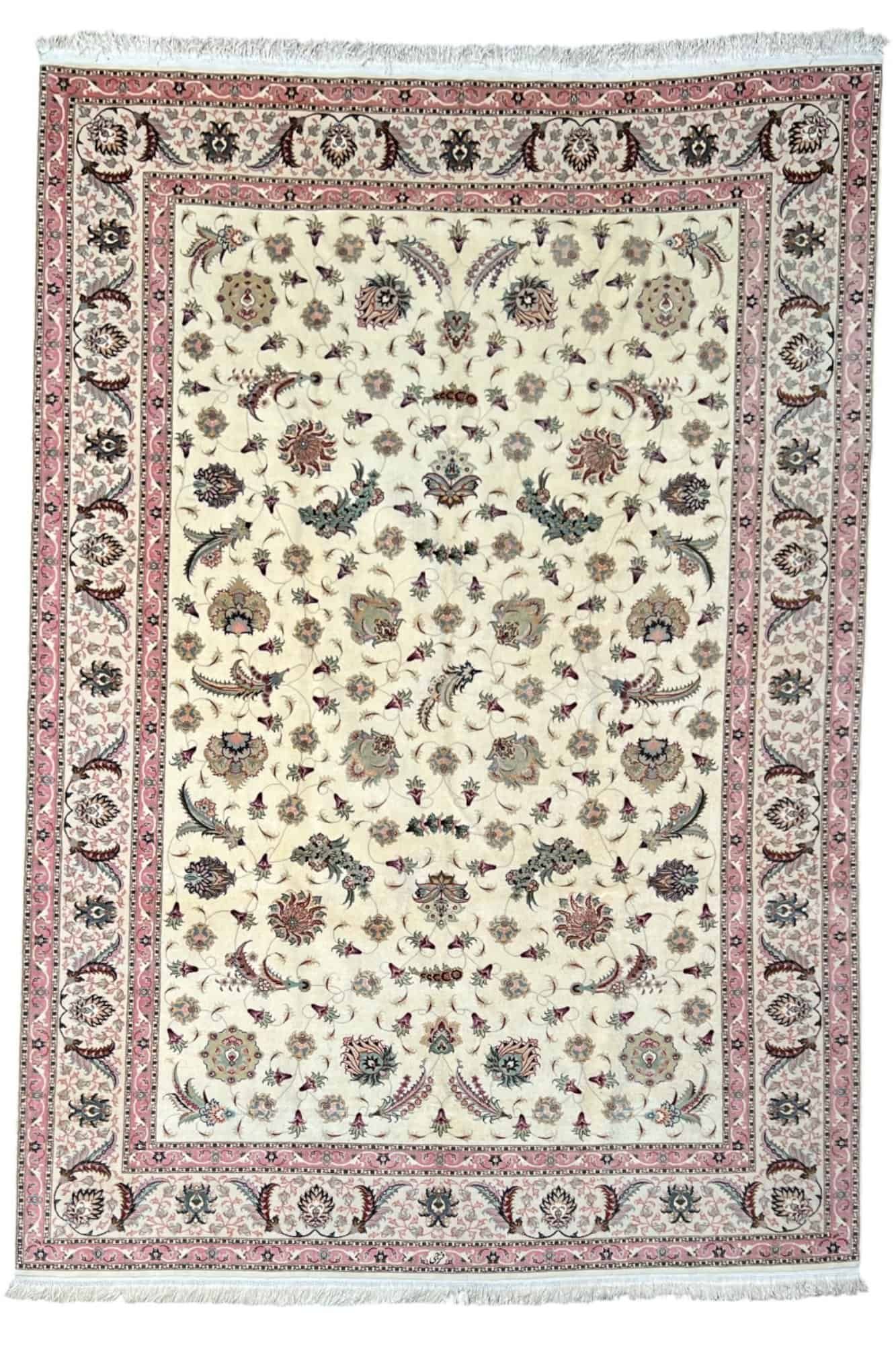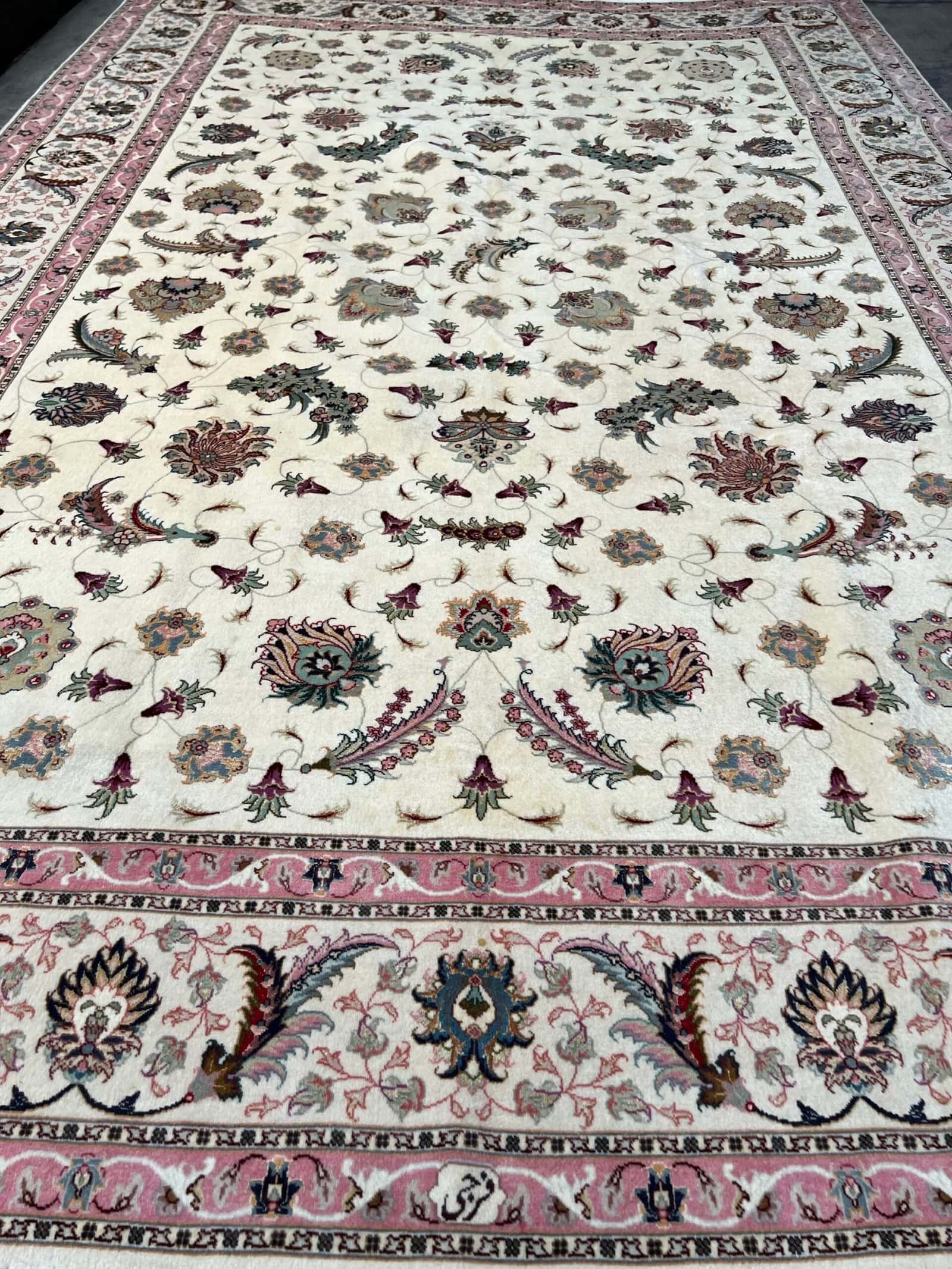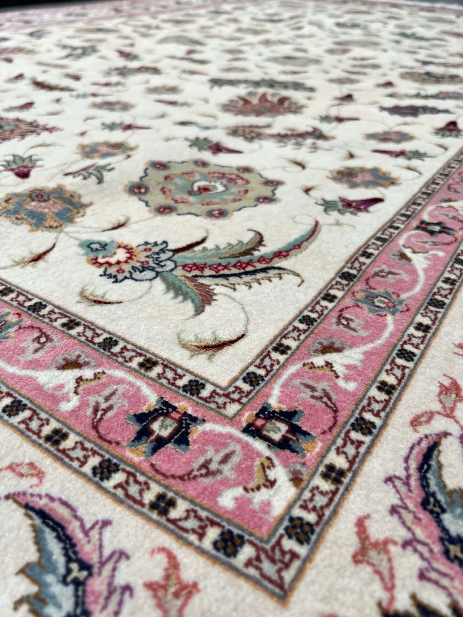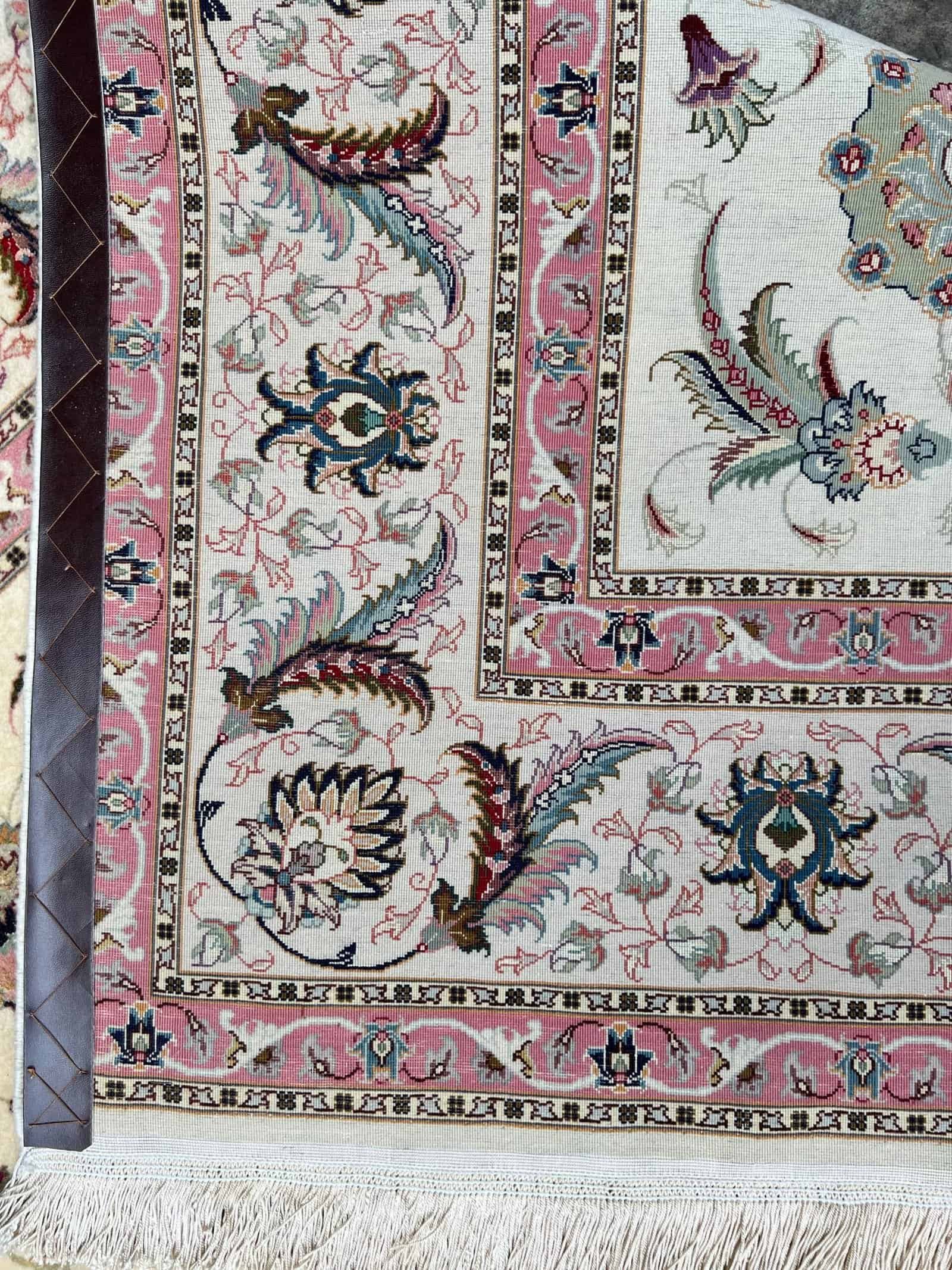 An exquisite fine handmade Tabriz Jawhar , finely knotted at 60 Raj. Crafted with precision using silk and wool, it features intricate detailing, a soft feel, and perfect symmetr , showcasing the highest level of Persian weaving artistry , silk knotted by master faraji.